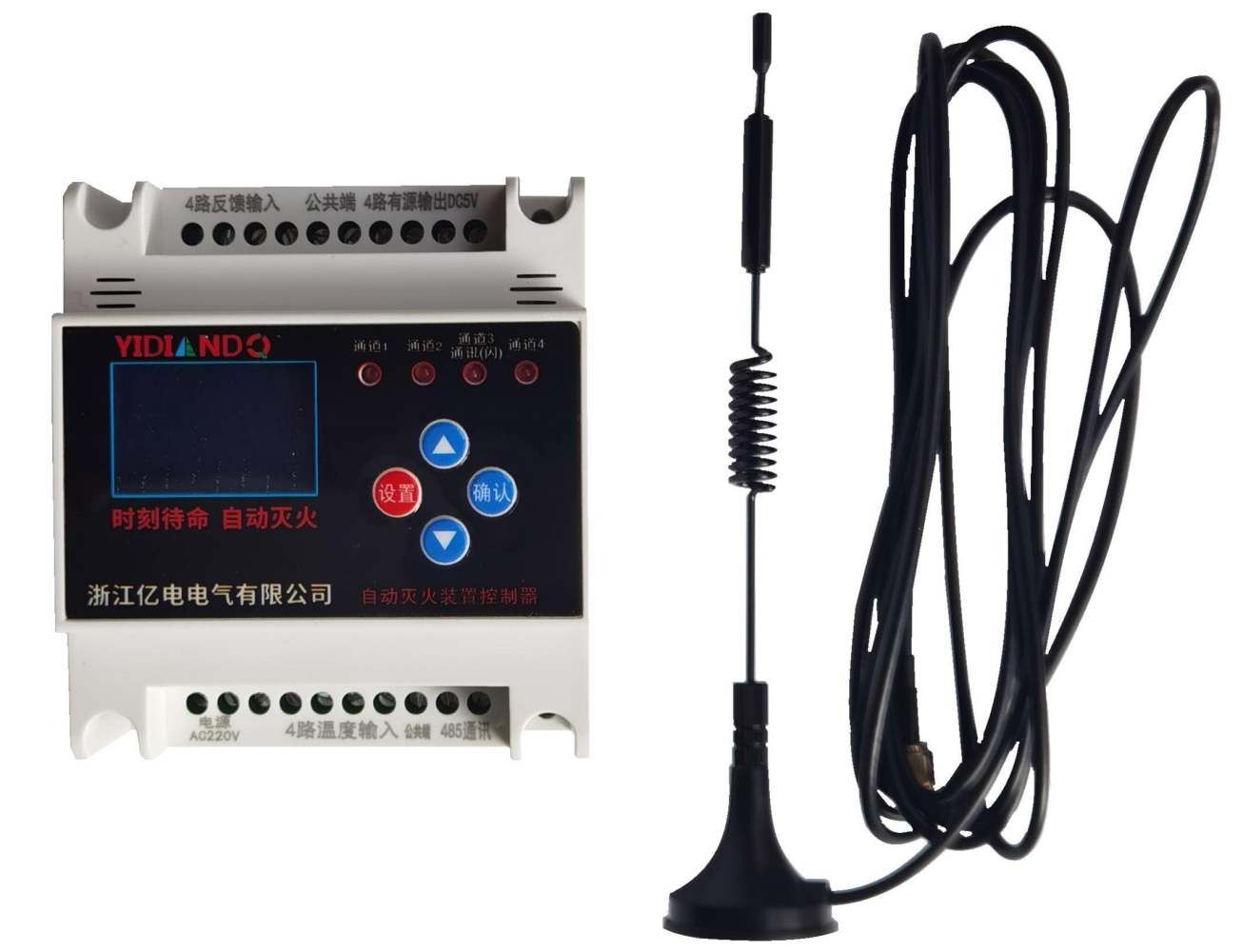 YD116 控制器监控电气设备温度变化,当电气设备温度超过设定预警值时,在5ms内控制器及主机会立即报警,指示灯闪烁,提醒用户查看现场情况; 当电气设备起火时,内部温度达到175±5%电气柜火灾抑制装置 启动时,反馈信号通过控制器无线或有线传回主机或云平台及手机;